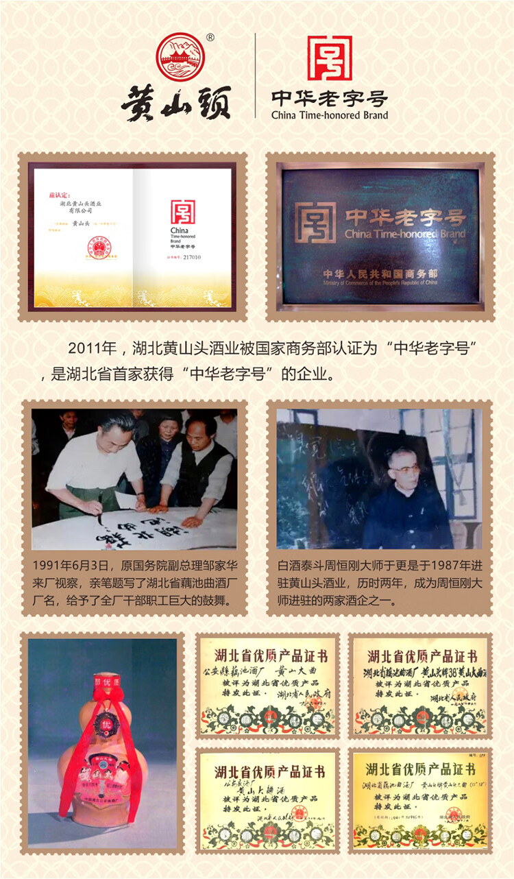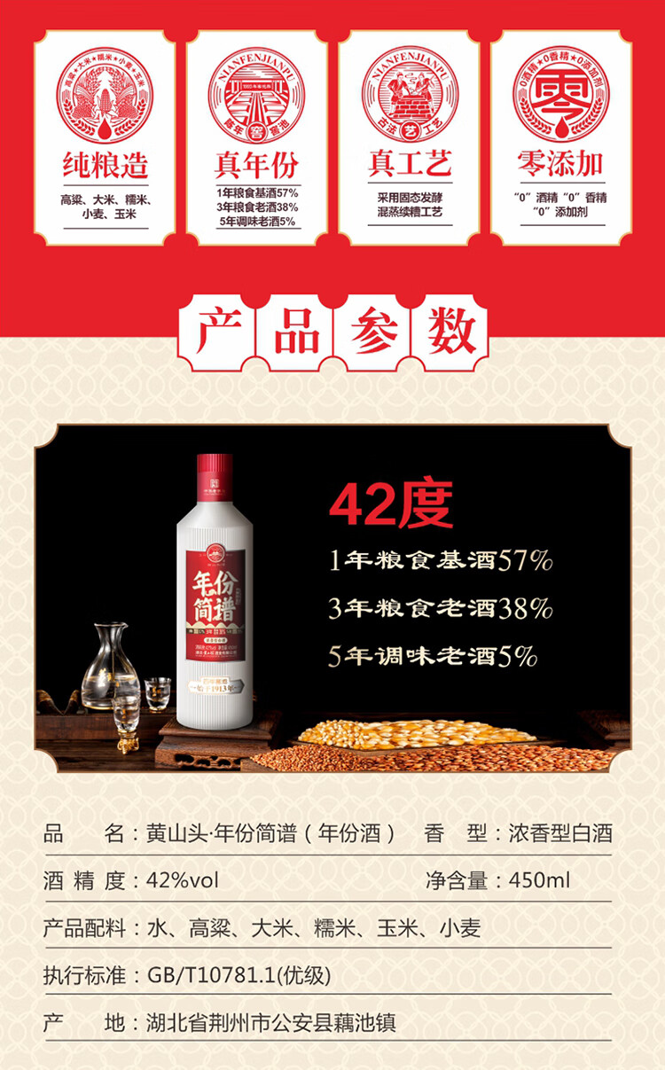 黄山头年份简谱 浓香型白酒 光瓶口粮酒年份酒国产粮食酒 42度450ml单瓶(红)