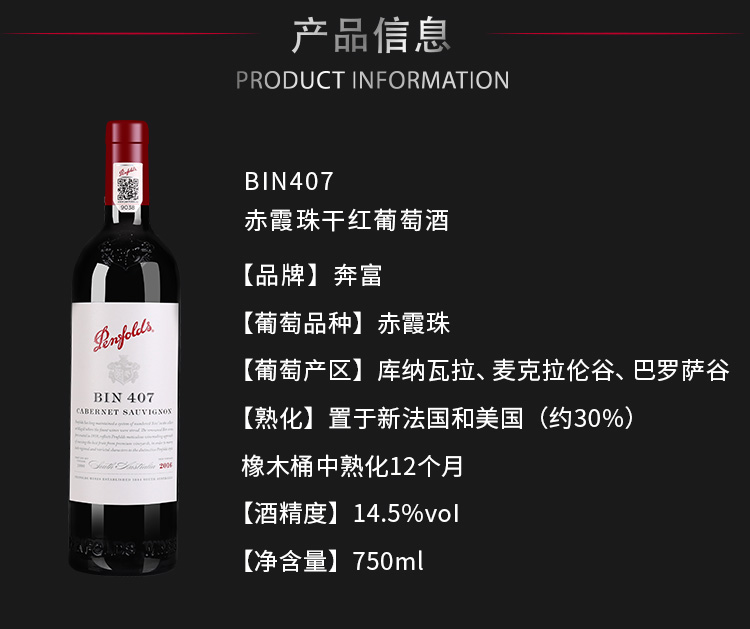 奔富BIN407解百纳赤霞珠干红葡萄酒