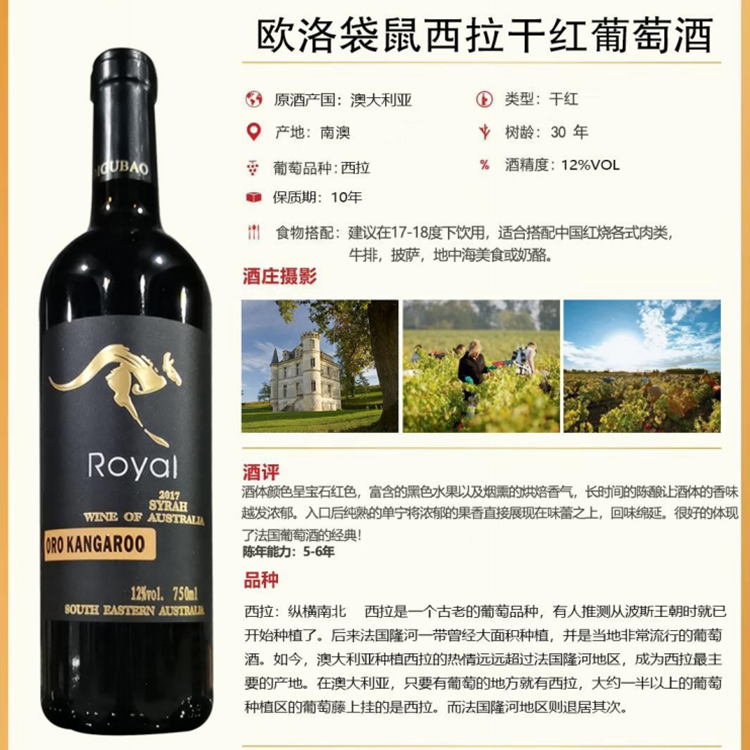 欧洛袋鼠西拉干红葡萄酒(黑)